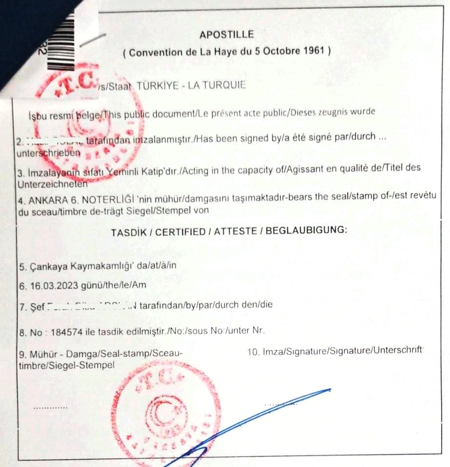 Coordinating with the relevant Turkish authority to obtain the apostille