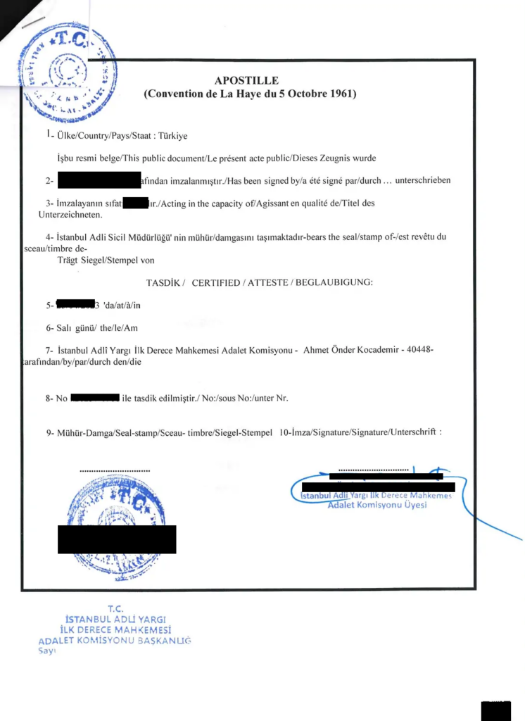 Please note that the authorities involved do not offer any possibilities to speed up the official process of issuing a certificate of good conduct including apostille from Turkey