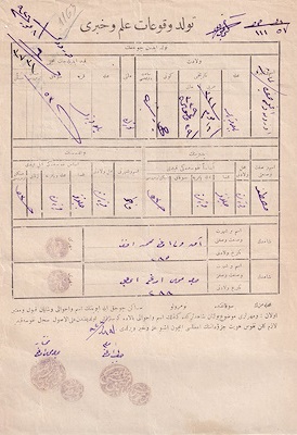 Turkish archives issued birth certificates over 110 years ago.